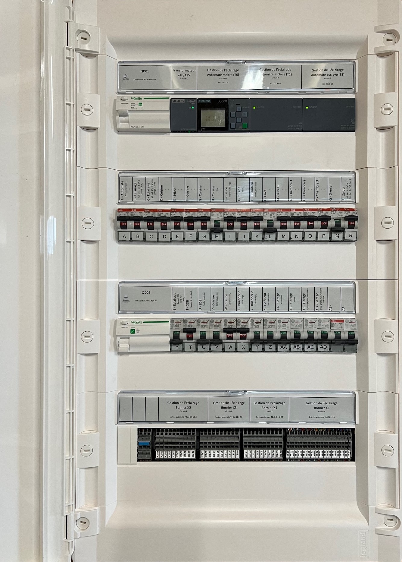 Travail soigné, repérage de la filerie, des bornes et disjoncteurs.