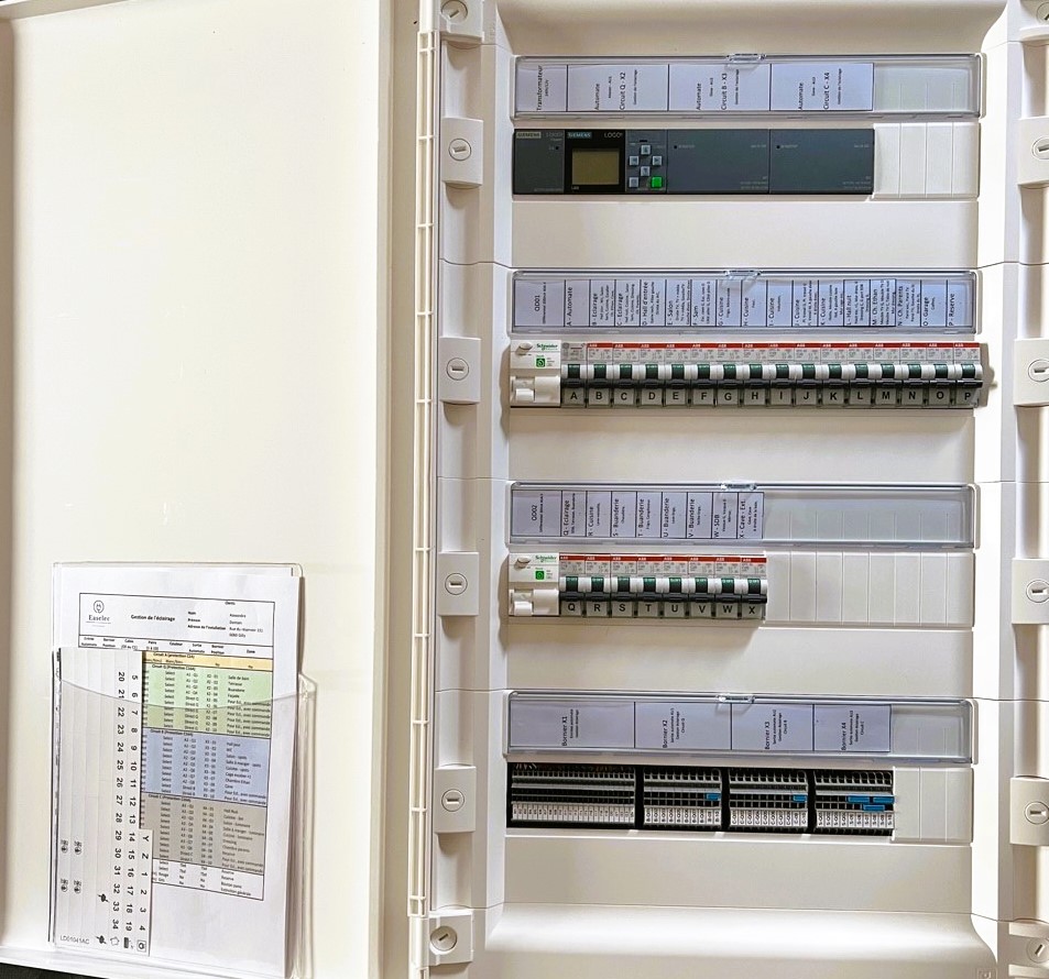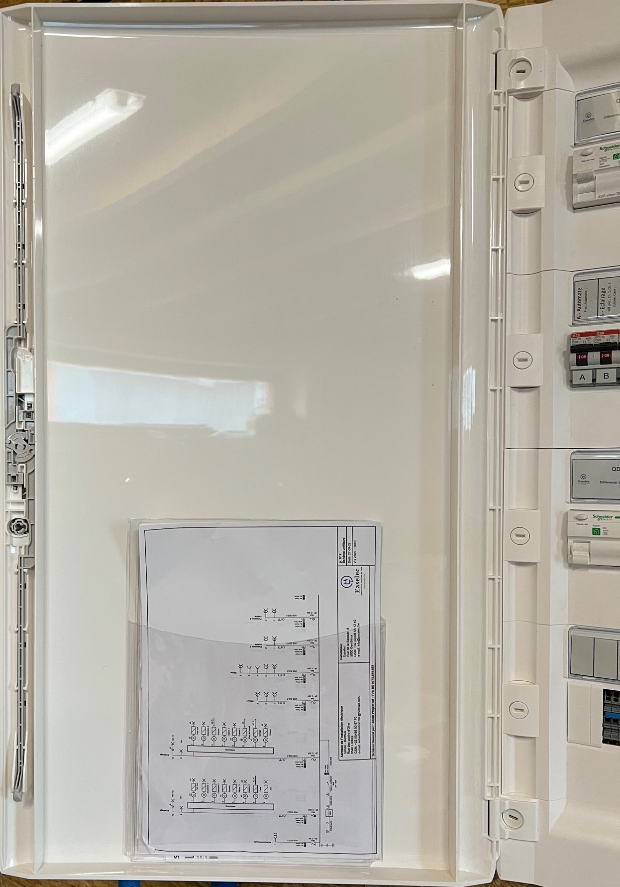Réalisation avec un Ekit 72-4 - Travail soigné, coffret fourni étiqueté, repérage des disjoncteurs et bornes. Le coffret est muni d'un porte plans.